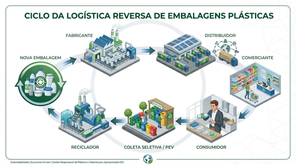 • Consumidores: fazem a separação e o descarte correto das embalagens, condição essencial para que a logística reversa funcione na ponta.